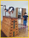překážková dráha. Rozcvička, skluzavky, skákání, běhání –