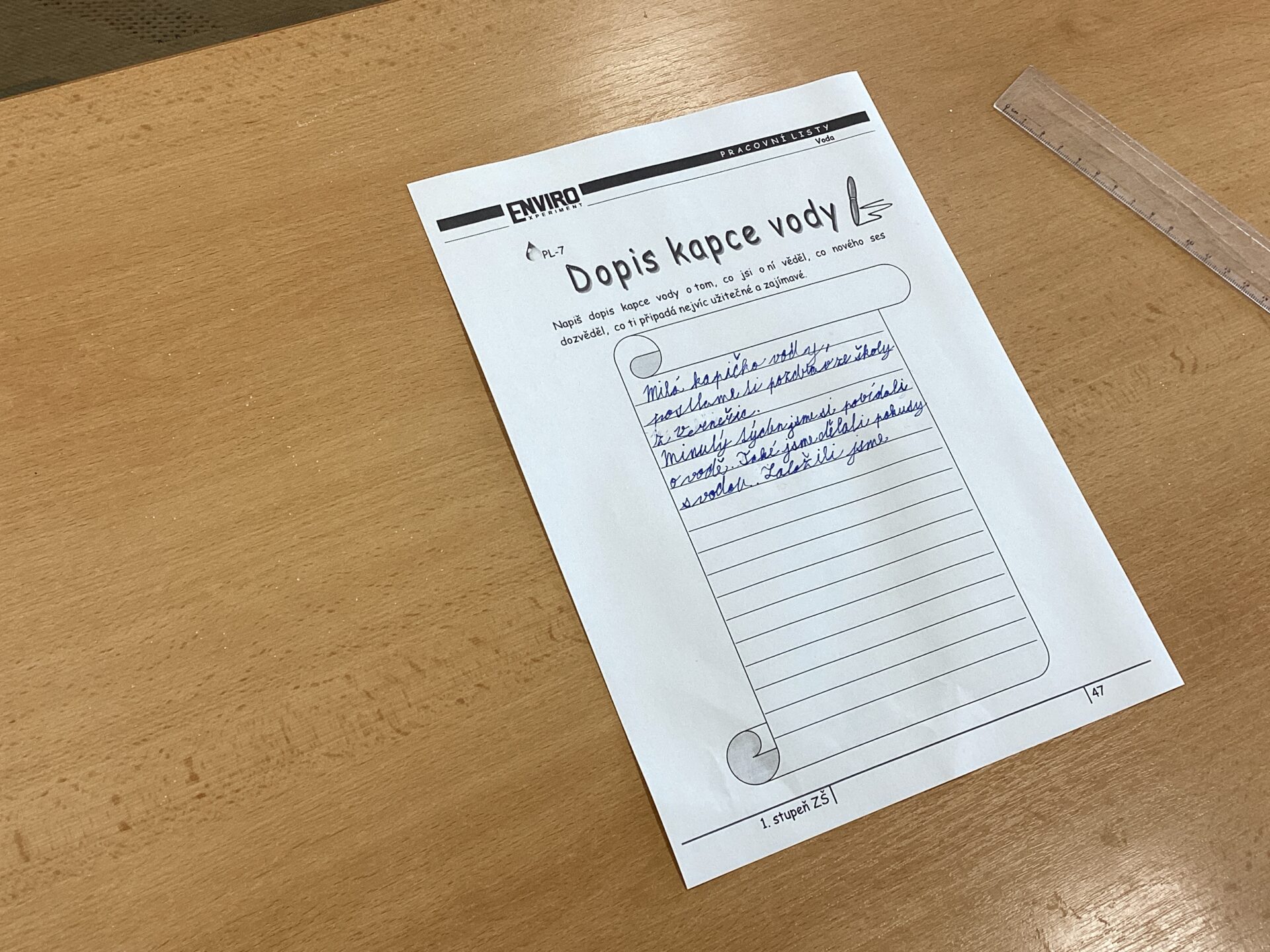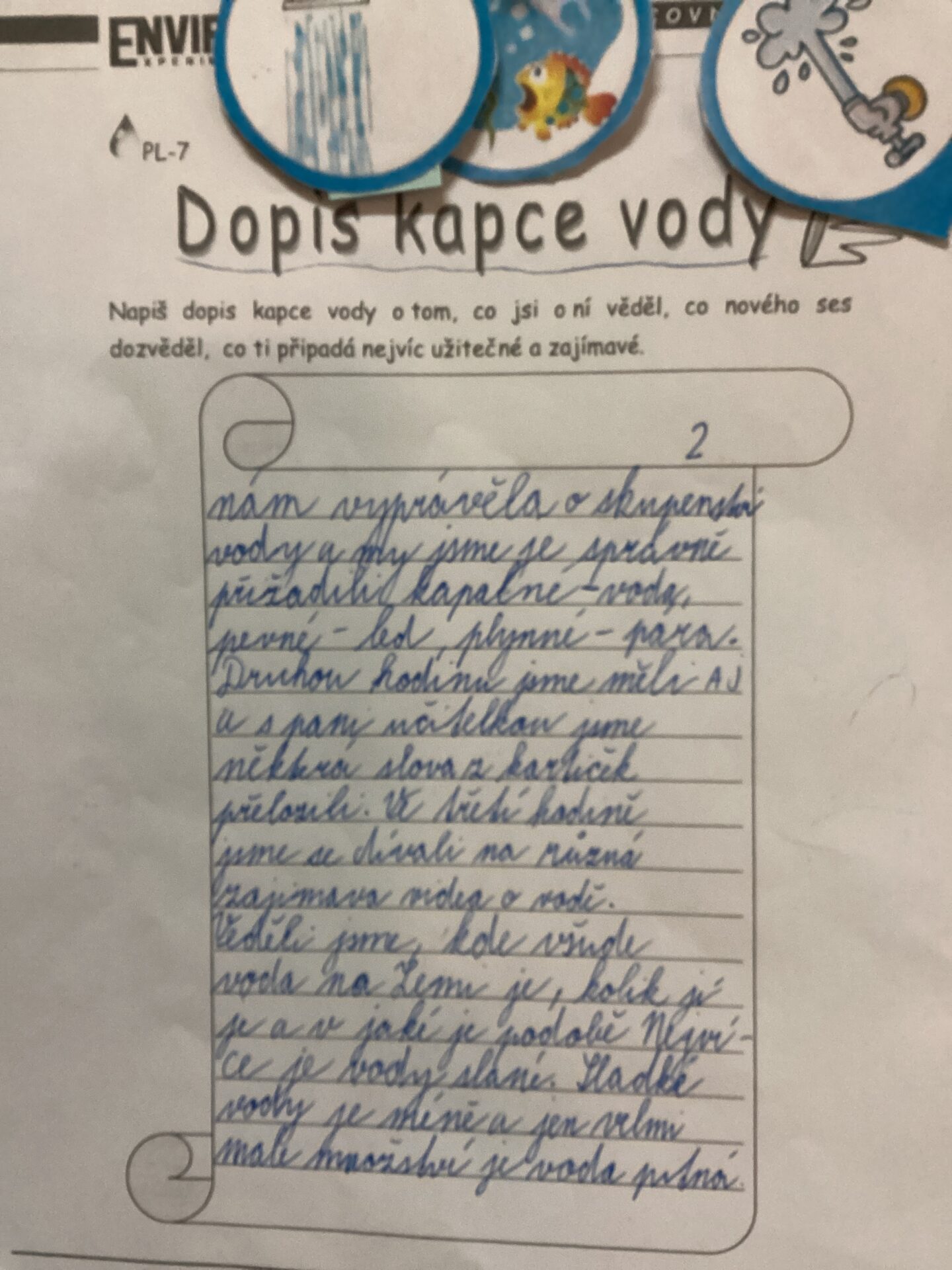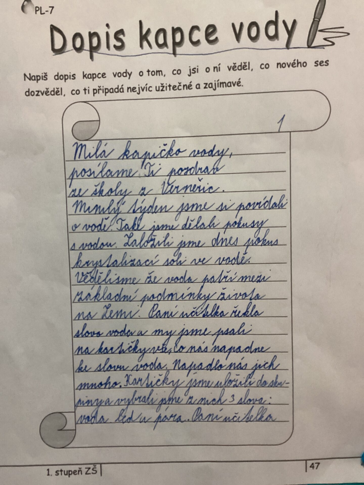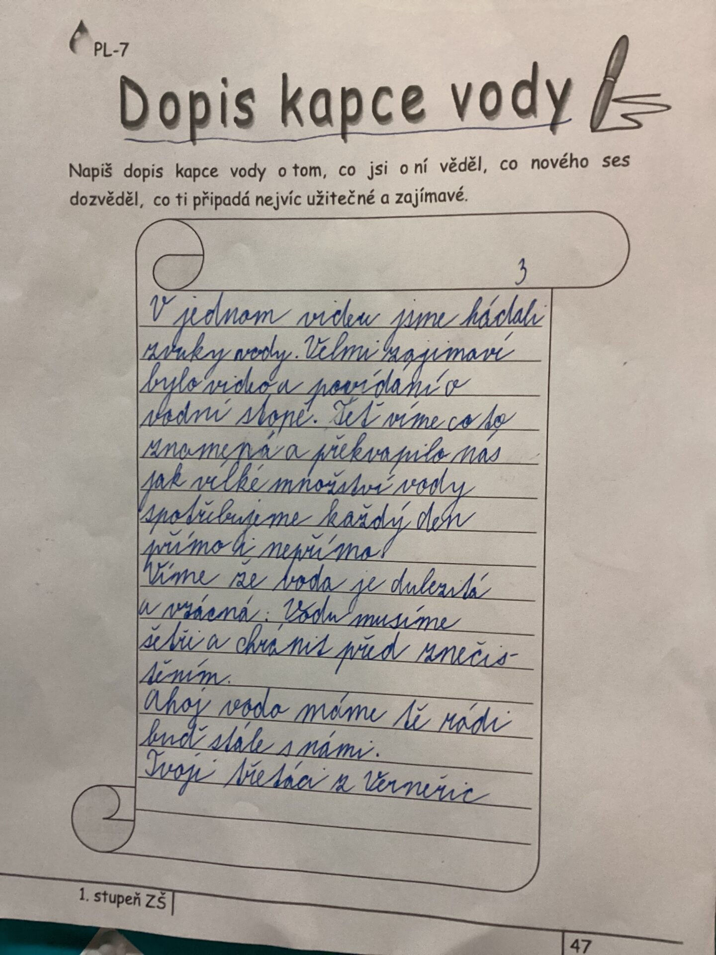 Nakonec jsme napsali dopis kapce vody. Dopis byl velmi dlouhý, protože jsme jí toho potřebovali hodně sdělit.