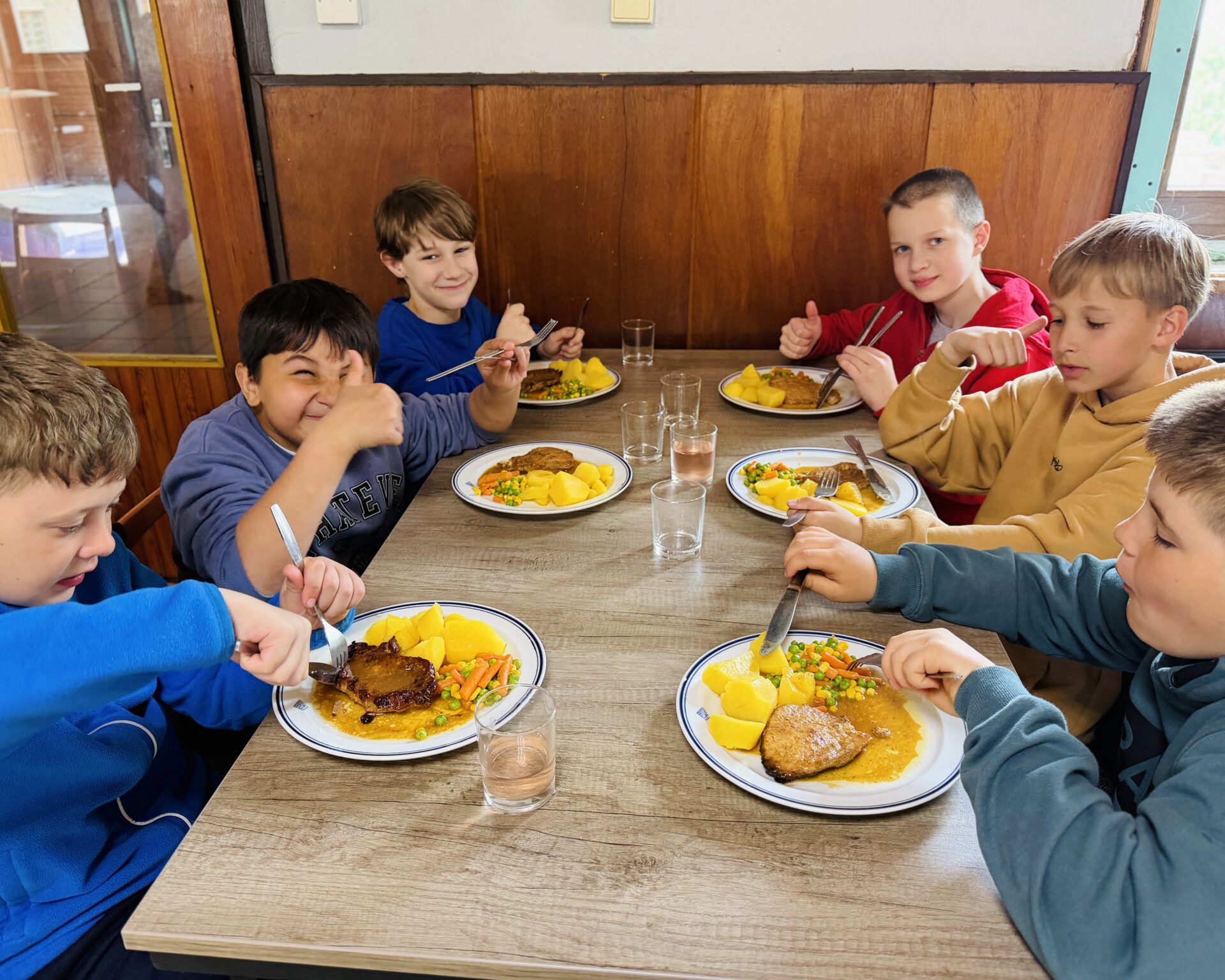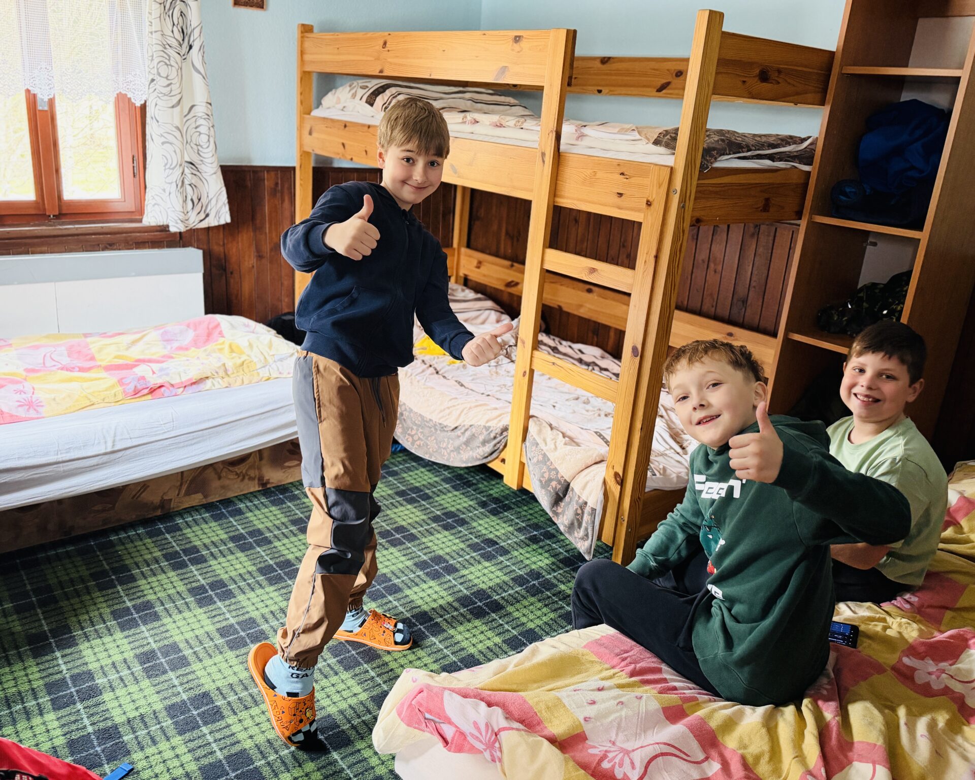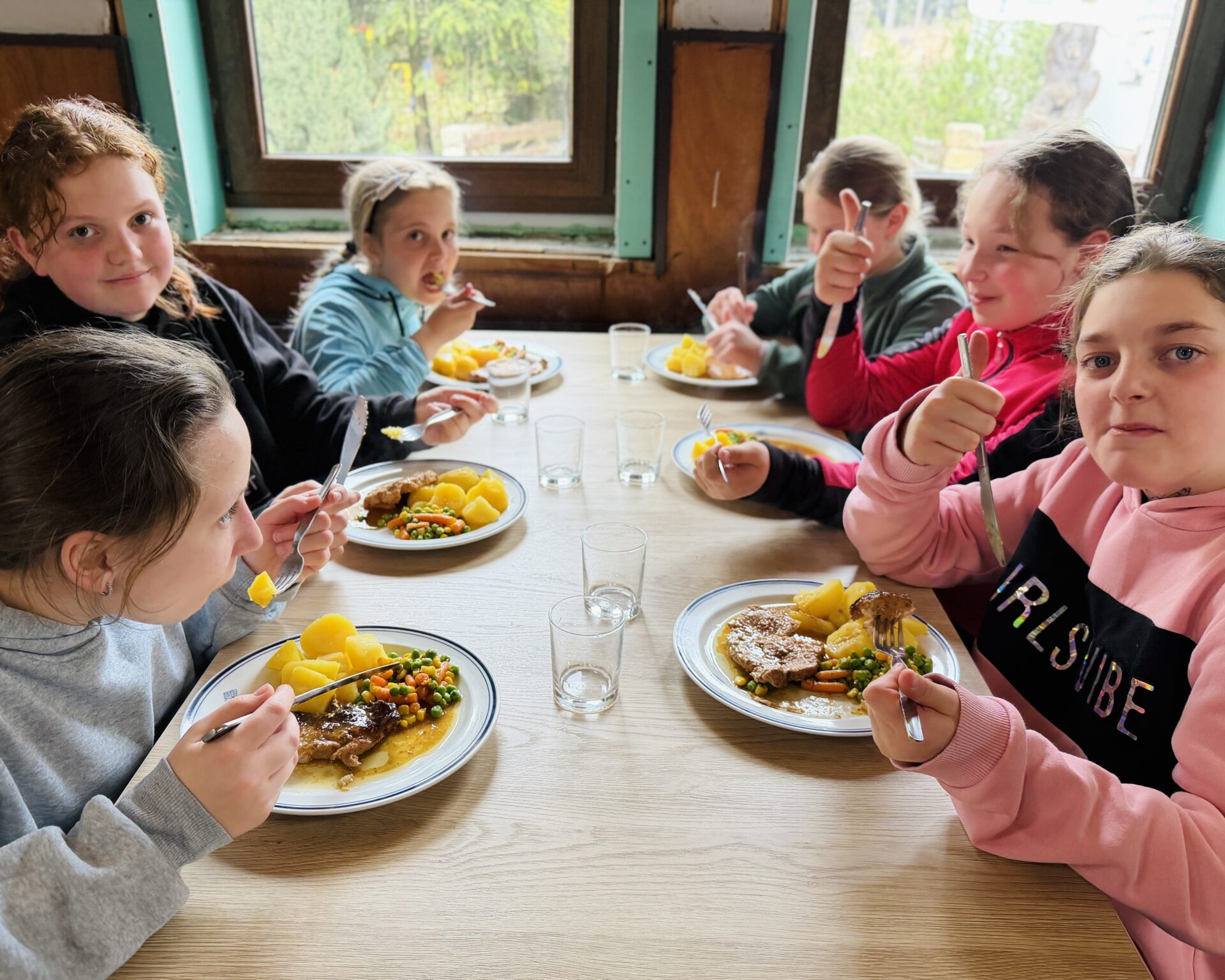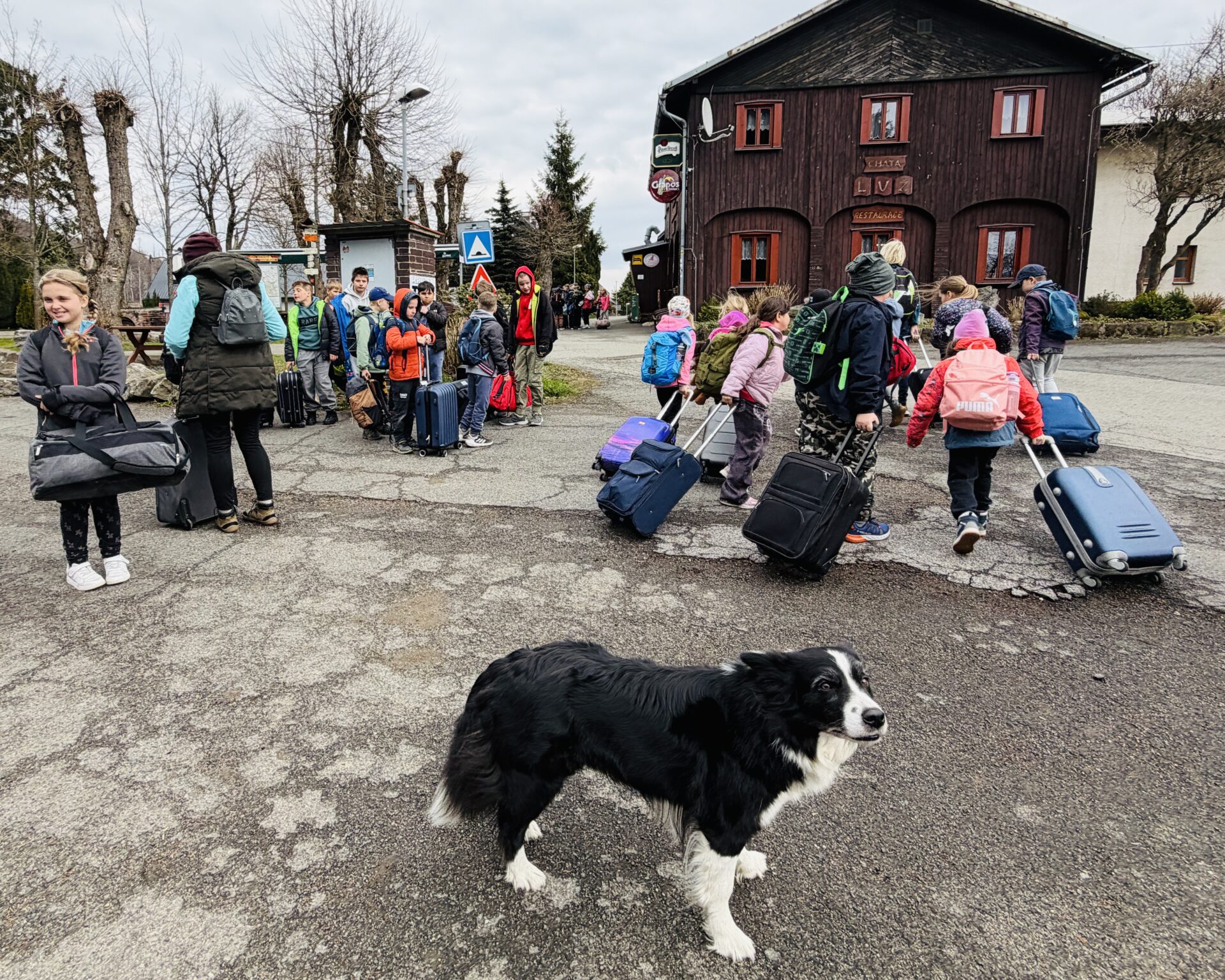 Po příjezdu na chatu Luž se žáci ubytovali na pokojích, vybalili si a začali si zvykat na nové prostředí. Následně jsme si společně prohlédli okolí chaty a poobědvali (vepřový plátek s bramborem). Po krátkém odpočinku na pokojích se žáci vydali na odpolední výšlap na Luž, kde si prakticky vyzkoušeli orientaci v terénu.
