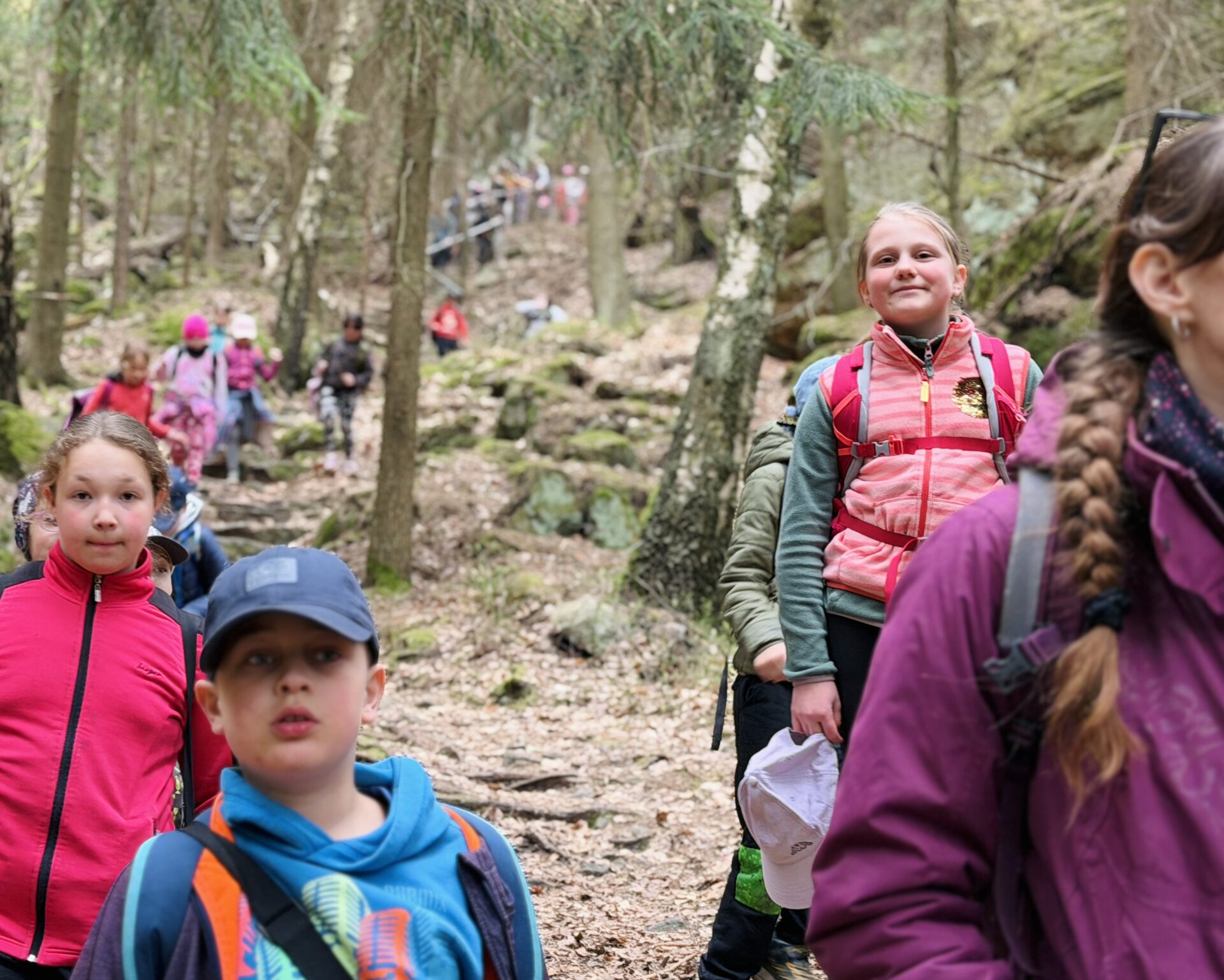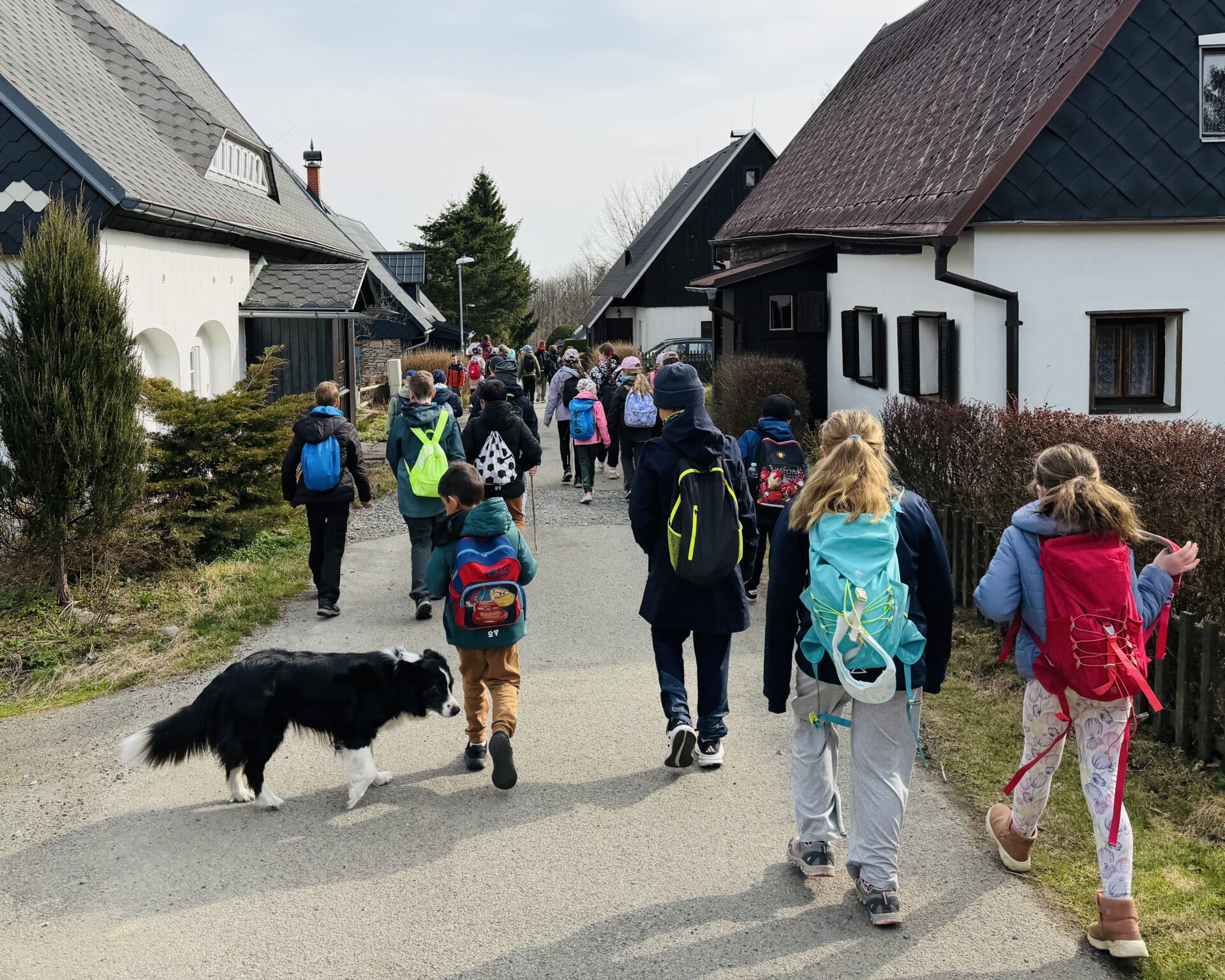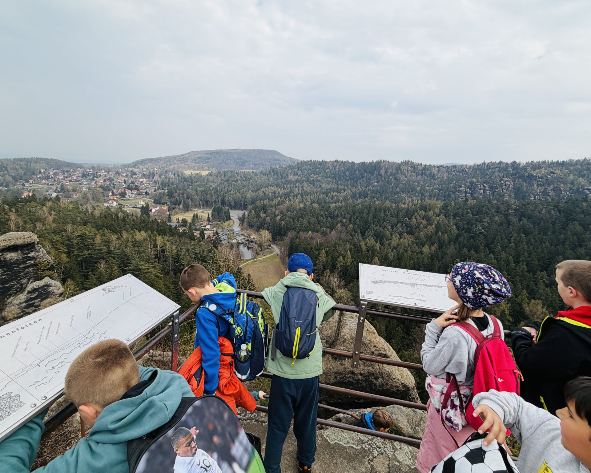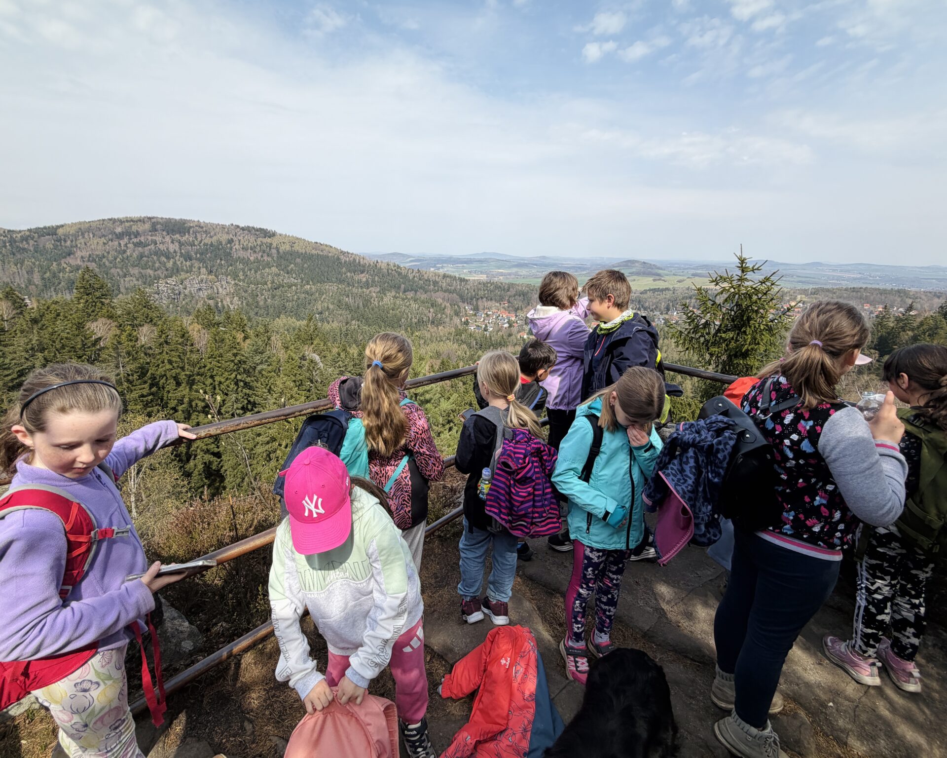 V průběhu odpoledne se žáci učili pracovat s turistickým značením, pozorovali proměny jarní přírody a z rozhledny měli možnost vidět území Česka, Německa i Polska. Starší žáci připravili pro mladší šipkovanou. Večer byl zakončen večeří (boloňské špagety a perník s ovocem), po které následoval společný program ve společenské místnosti a následně večerka.