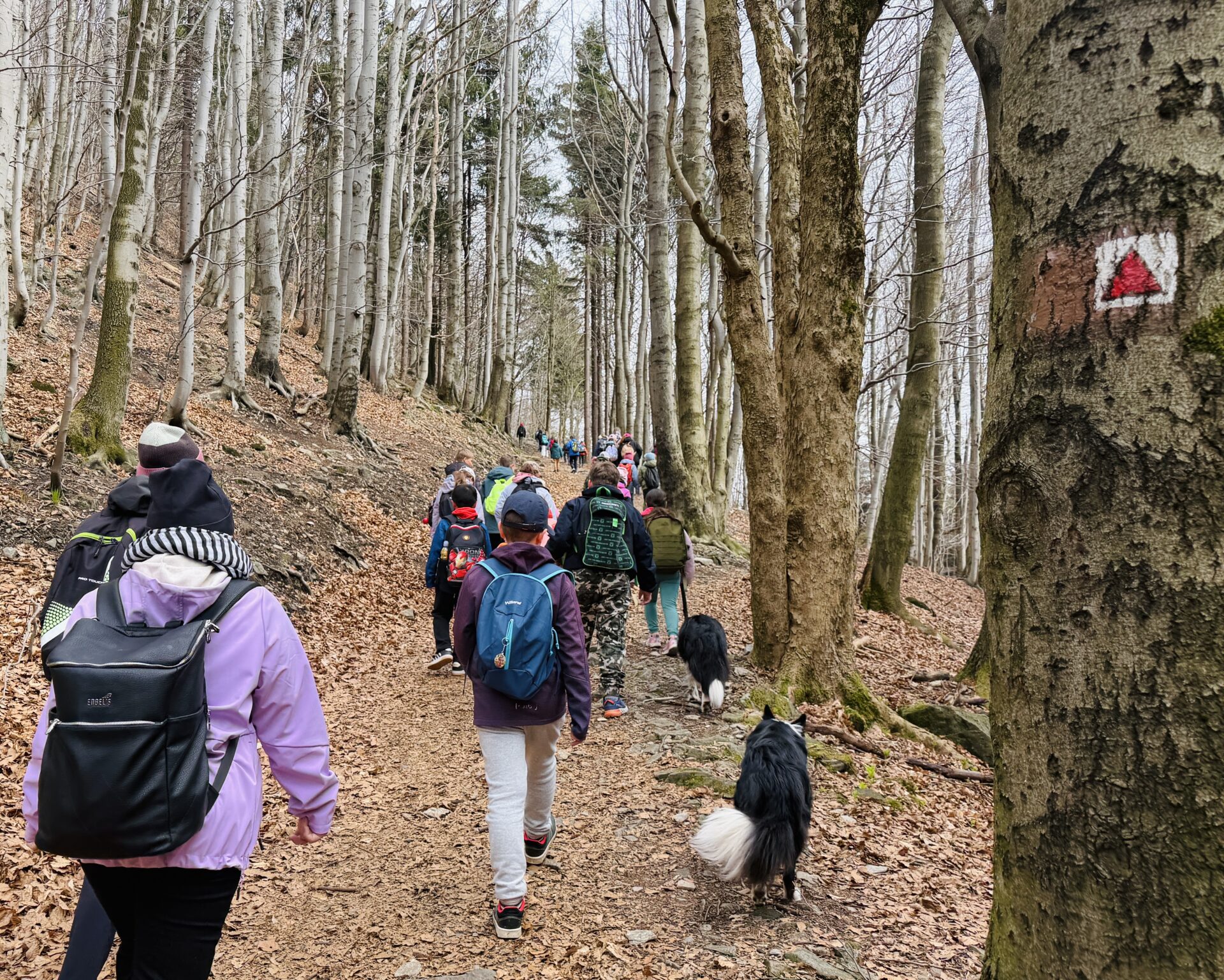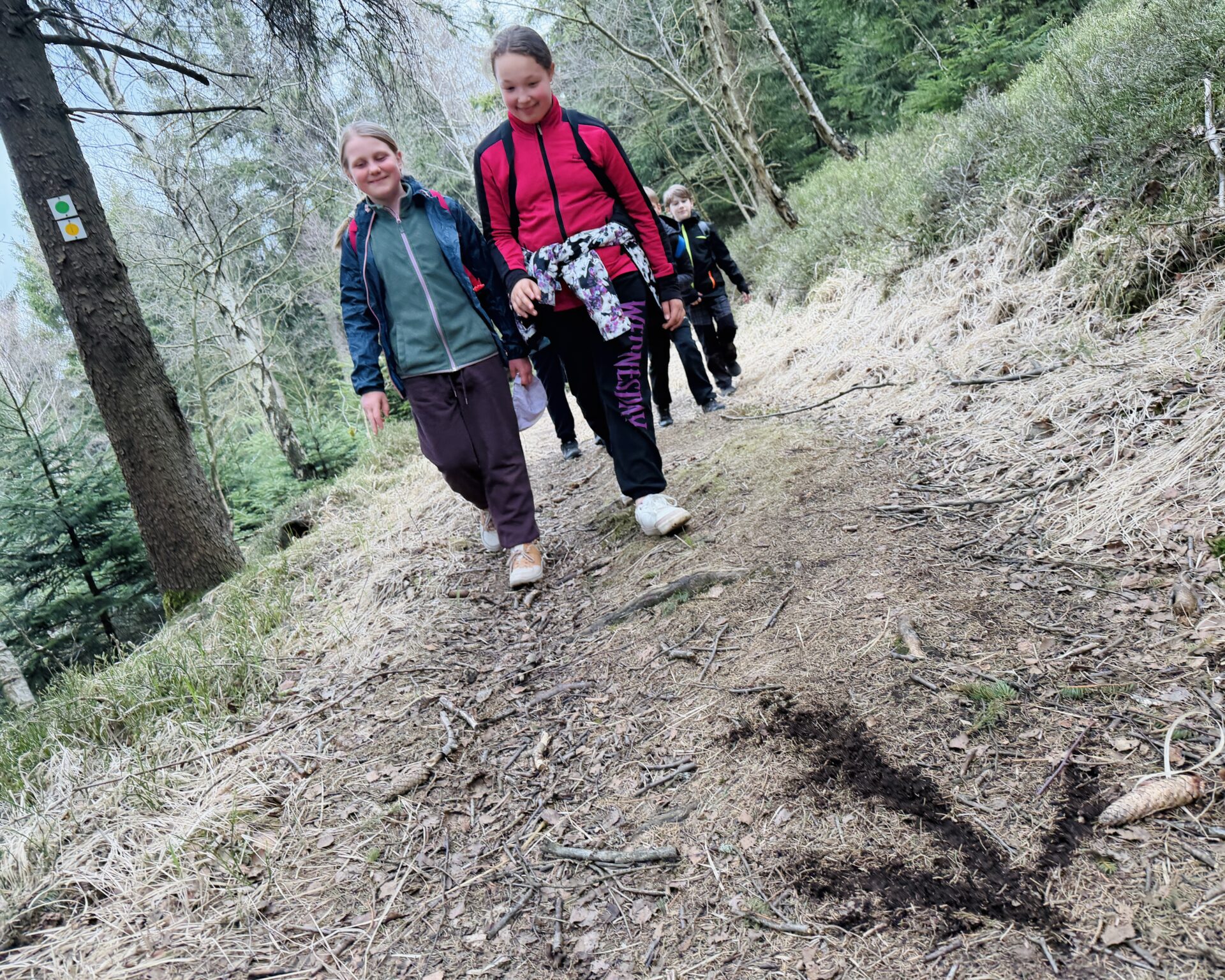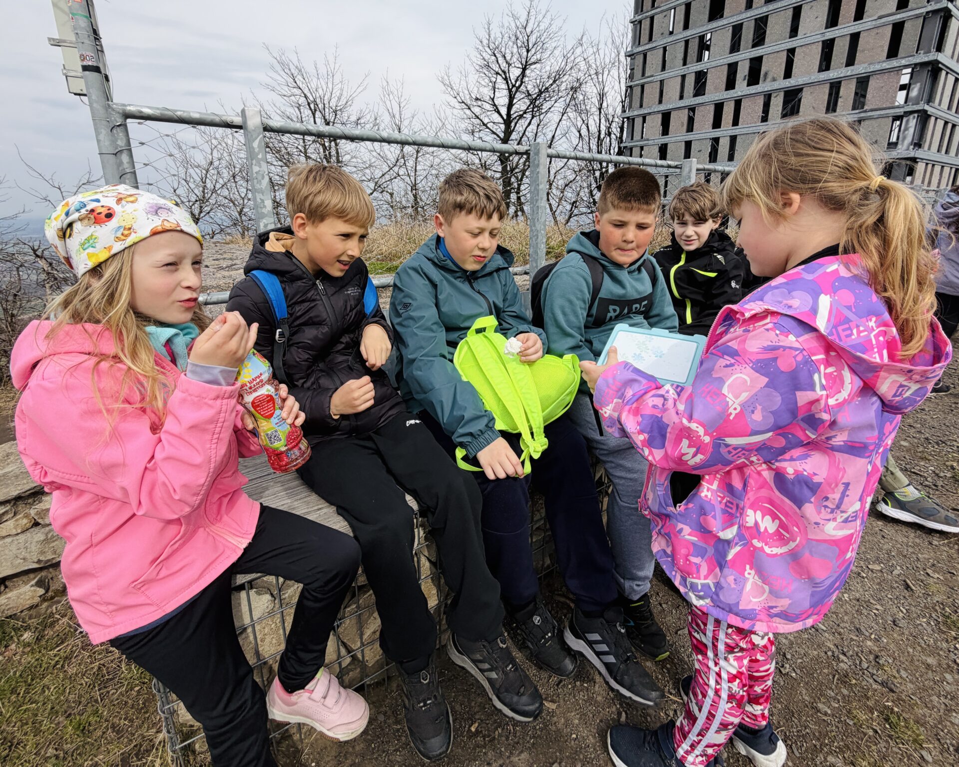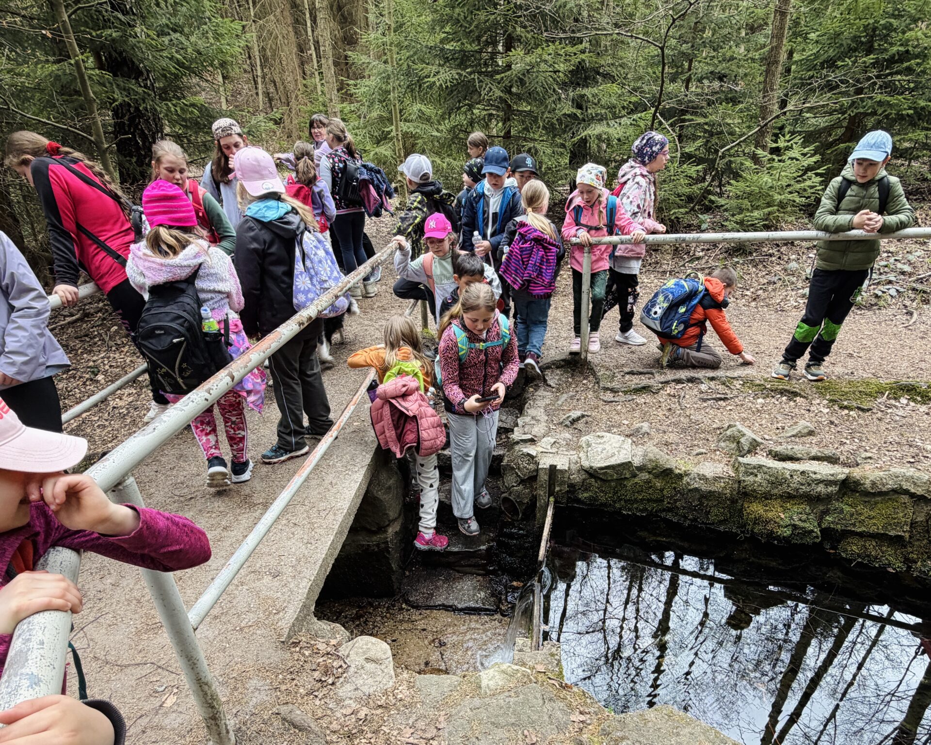 V průběhu odpoledne se žáci učili pracovat s turistickým značením, pozorovali proměny jarní přírody a z rozhledny měli možnost vidět území Česka, Německa i Polska. Starší žáci připravili pro mladší šipkovanou. Večer byl zakončen večeří (boloňské špagety a perník s ovocem), po které následoval společný program ve společenské místnosti a následně večerka.